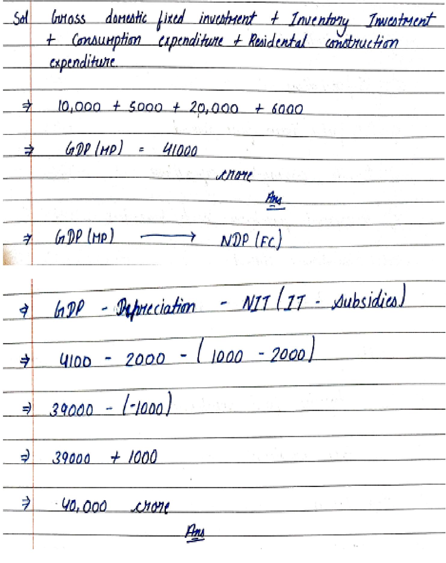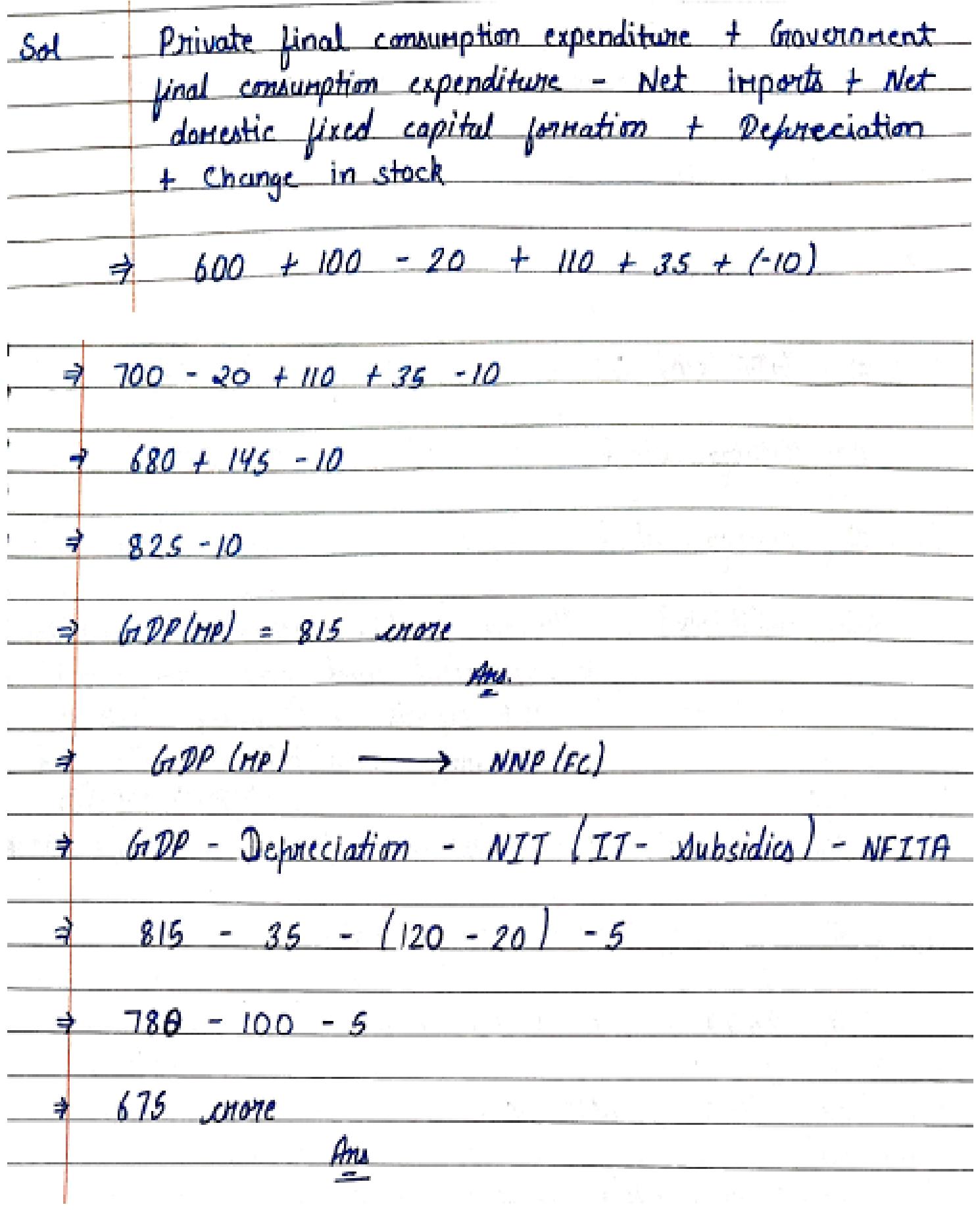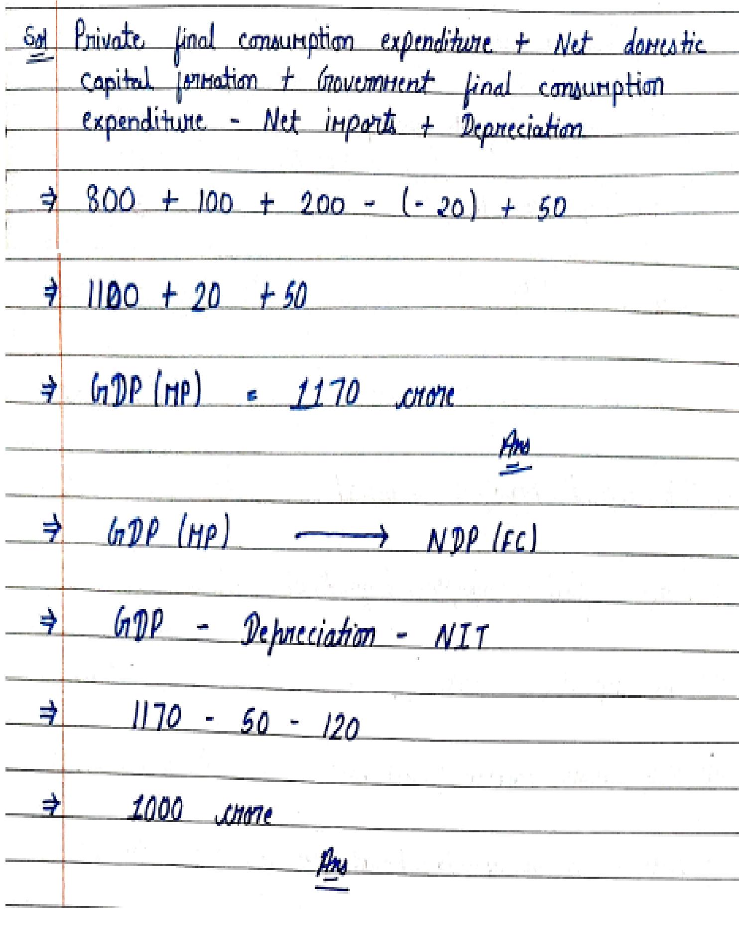 Deduct depreciation and net factor income from abroad (if asked).